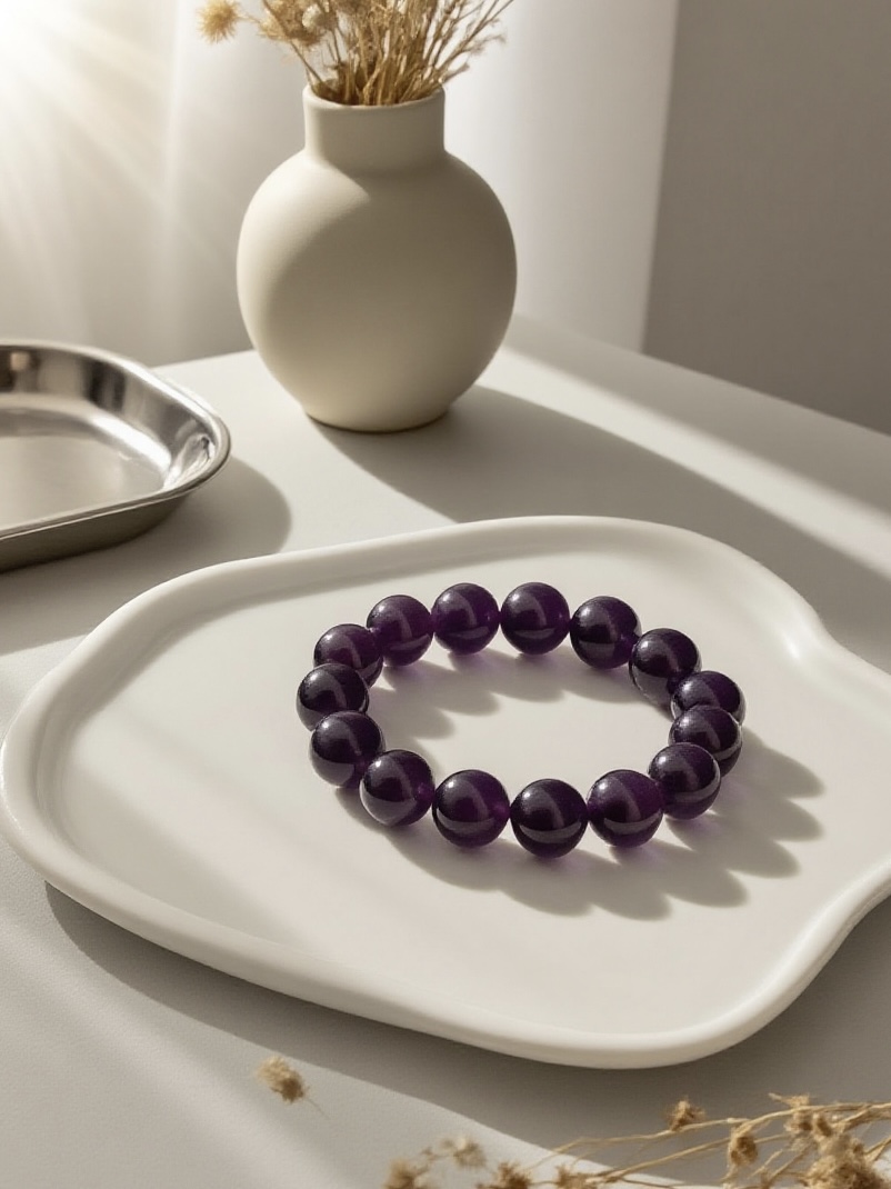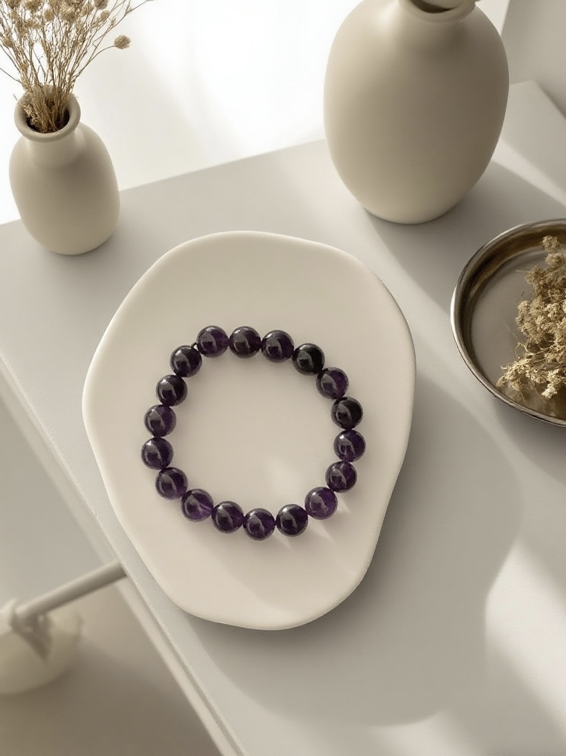 This bracelet features 10mm amethyst beads with a rich purple hue. Strung on an elastic cord, it’s an elegant accessory that connects to the third – eye and crown chakras, enhancing spiritual insight and calmness.