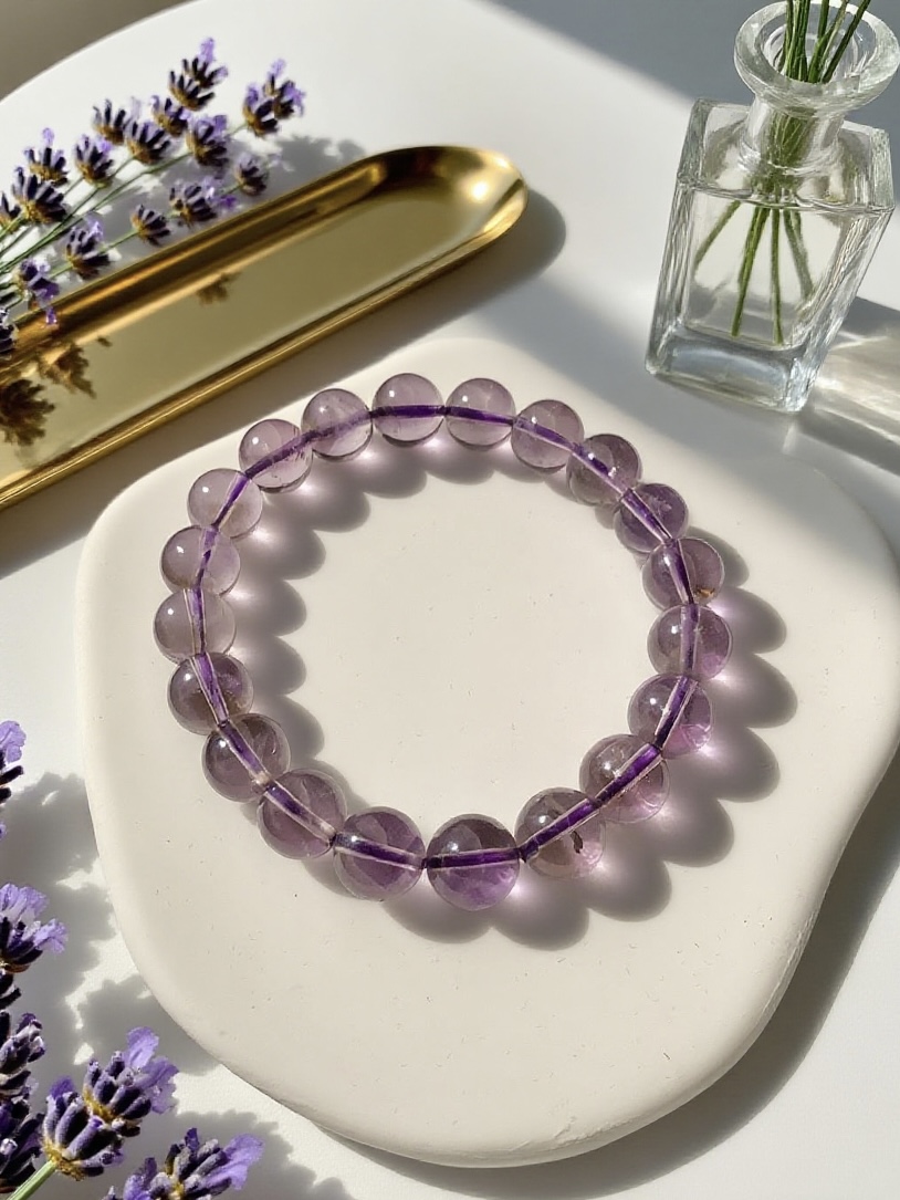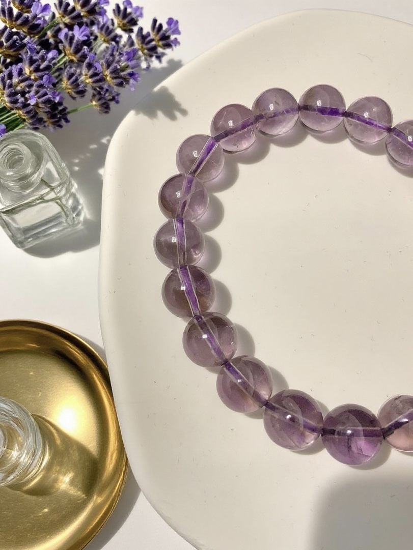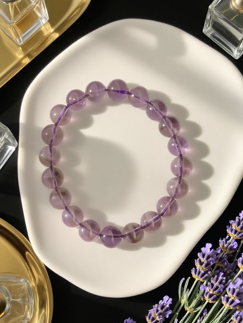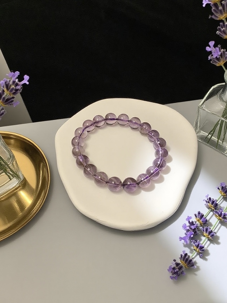 This bracelet showcases 10mm amethyst beads with rich, transparent purple tones. Strung on an elastic cord, it’s an elegant piece that aligns with the third – eye and crown chakras, enhancing spiritual insight and inner tranquility.